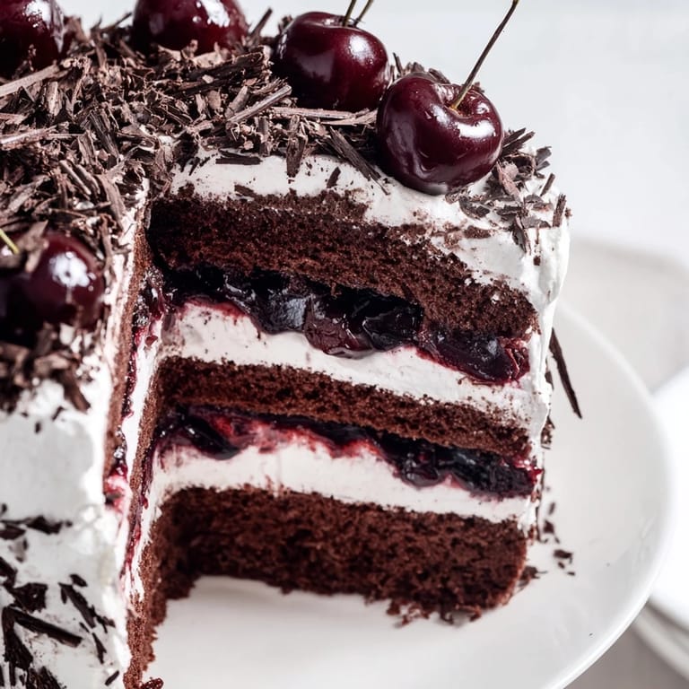 Save The first time I truly understood Black Forest Cake was in a tiny café in Stuttgart, watching a baker arrange chocolate shavings with the precision of someone placing jewels. What struck me wasn't the elegance—it was how she moved between the layers with such quiet confidence, knowing exactly where each cherry belonged. I've since made this cake dozens of times, and each time I'm reminded that this isn't just chocolate and fruit; it's a moment of deliberate care wrapped in cocoa and cream.