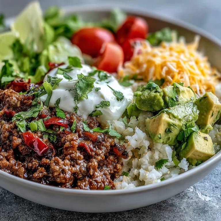Save My skillet was crackling with ground beef one Tuesday evening when I realized I'd forgotten to buy tortillas. Instead of panicking, I grabbed a bag of cauliflower rice from the freezer and decided to build everything straight into bowls. The lime I squeezed over the top at the last second turned the whole thing bright and alive. Now I skip the tortillas on purpose every single time.
