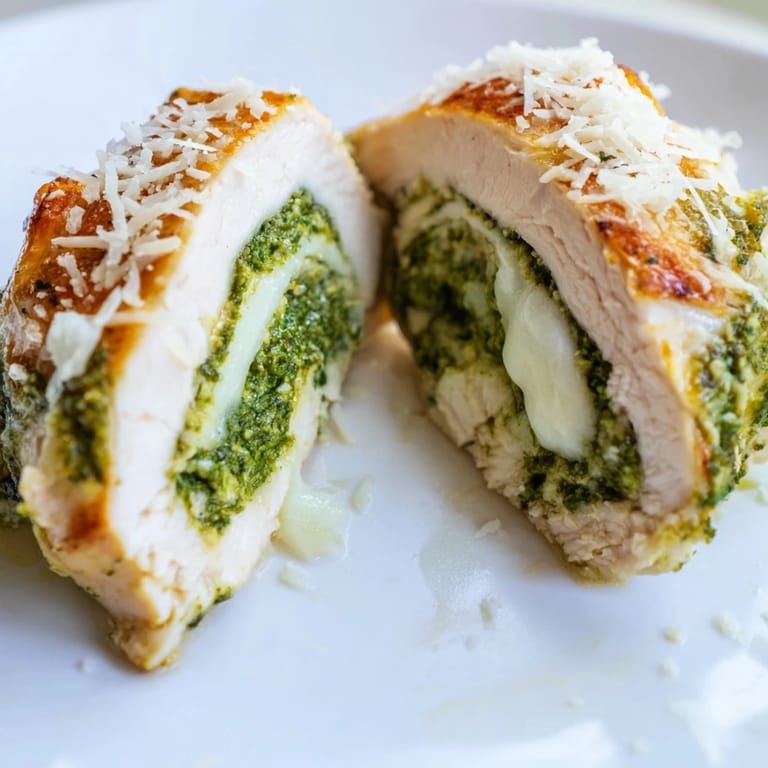 Save The first time I made stuffed chicken, I was terrified of cutting those pockets. My hands were shaking, and I kept imagining chicken breast bursting open in the oven like some culinary disaster. But then I pulled that dish out and saw the golden Parmesan crust, and when I cut into it, this incredible stream of pesto and melted mozzarella just poured out. Now it is my go to when I want something that looks impressive but honestly takes about fifteen minutes of actual work.