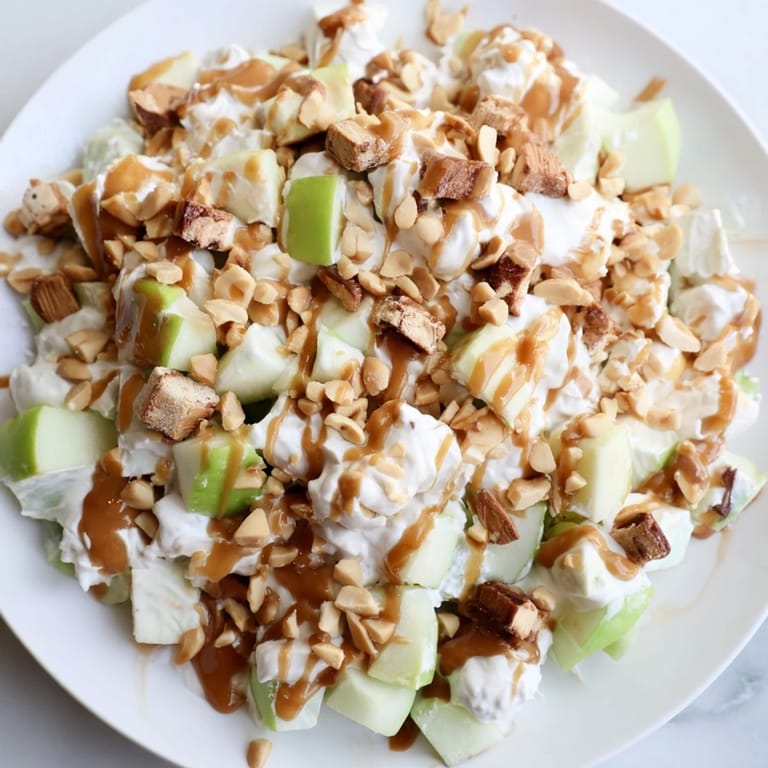 Save I discovered Snickers Salad at a church potluck years ago when someone brought a bowl of what looked like a simple fruit dish. One bite of that combination—crispy apple, chewy Snickers, and fluffy vanilla cream—and I was completely hooked. It's one of those recipes that seems almost too simple, too indulgent to be true, but somehow it works perfectly. Now I make it whenever I need something that feels special without the stress, and it never fails to disappear fastest from the table.
